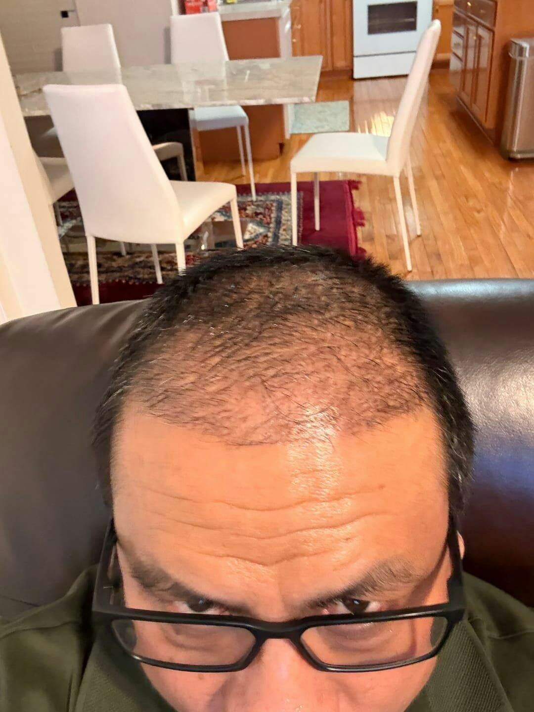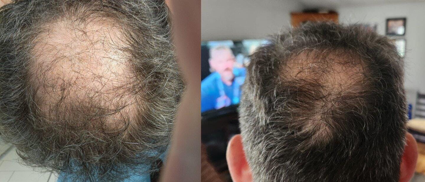 Siempre me mantenía el cabello corto porque se estaba volviendo demasiado fino para peinarlo. Pensé que así iba a ser siempre. Después de aproximadamente un mes, empecé a notar que se sentía más grueso, aunque no estaba seguro si me lo estaba imaginando. Para el tercer mes, incluso mi esposa comentó que se veía más abundante. Ahí fue cuando supe que algo realmente estaba creciendo. No esperaba volver a tener tanto cabello, pero aquí estamos. Si estás pensando en probarlo, hazlo.