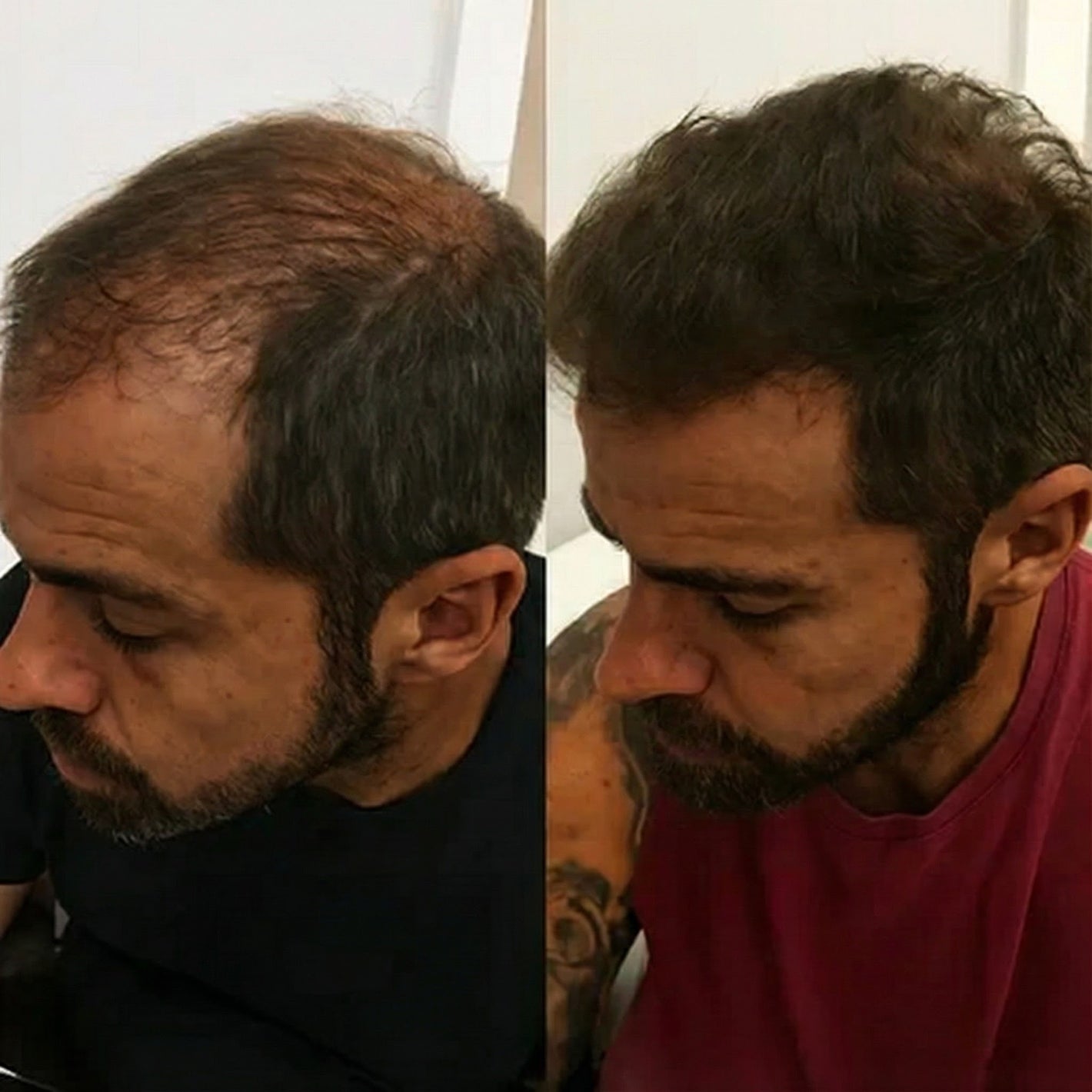 "Mi línea de cabello retrocedía y mi confianza también. 10 semanas después, mis compañeros me preguntan si me hice trasplante. Sin medicamentos. Sin efectos secundarios. Solo resultados reales."